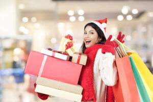 Happy,Girl,Shopping,Christmas,Gifts,In,Shopping,Mall.,Christmas,Shopping