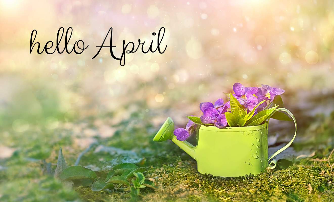 Hello,April.,Violet,Flowers,In,Mini,Watering,Can.,Beautiful,Spring