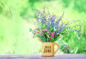 Hello,June.,Meadow,Flowers,In,Cup,,In,Garden.,Summer,Season